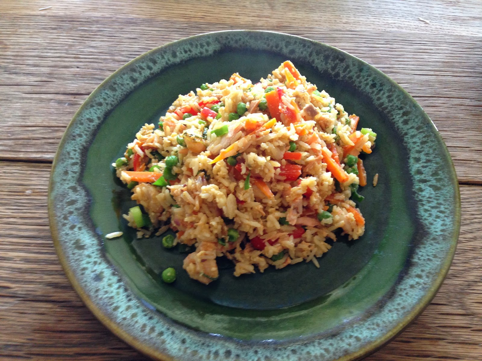 Kiirelt valmiv ja tervislik lõunasöök. Super toit kasutamaks ära eelmisest toidukorrast järele jäänud (basmati)riisi ja mingit liha/mereande. See kord kasutasin krevette ja eelmisest toidukorrast üle jäänud ahjulõhet, aga sobib väga hästi ka ainult krevettidega, krevettide-kanaga või seafileega. Retsepti idee sain Malaisias söödud chicken fried rice-ist, mis on sealne väga populaarne kiirtoit. Ka indoneesias on sarnane pratud riisitoit väga populaarne- seal kutsutakse seda nasi gorengiks. Nende roogade ühine nimetaja on riis, mingit sorti juurviljad, muna ja mingi liha/mereand. Maitsestatakse tavaliselt sojakastme, seesamiõli ja natukese tšilliga.