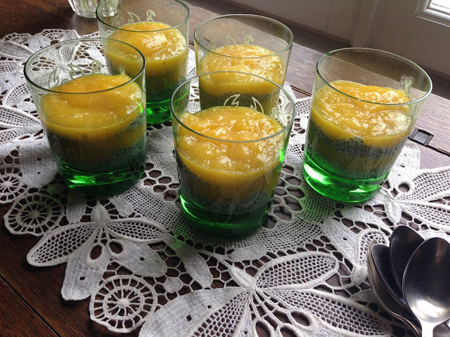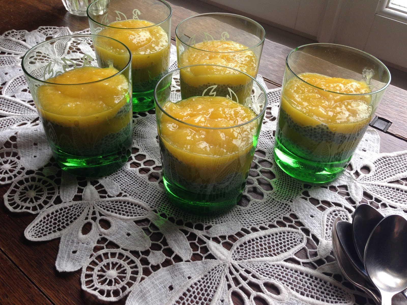 Serveerimisel pane kihiti 1 spl chia pudingut, 1 spl mangopüreed nii mitu kihti kui materjali jätkub.
